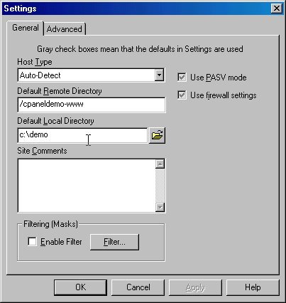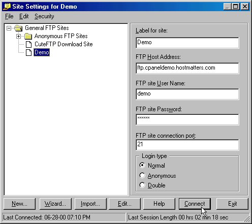 the IP address for your site, or by using ftp.yourdomain.com, as shown