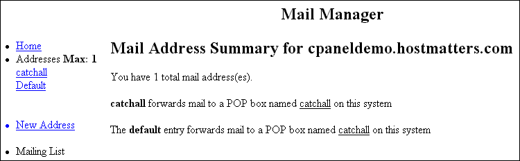 Mail Manager option provides several ways of managing the mail