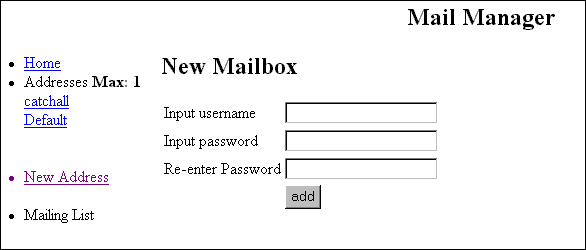 the New Address link by single-clicking on it. The New Mailbox