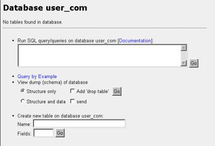 After you have added tables to your database, subtle differences to the main database page will appear on subsequent visits. More options will be available to you, all of them as a result of the fact that your database now has tables with which you can work.