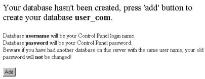 2. Select the Add button. A message appears indicating your database will be installed within approximately ten minutes. |