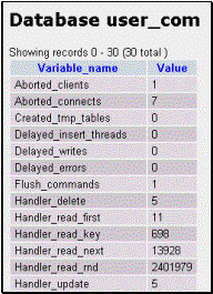 After your MySQL database has been installed, accessing the MySQL icon on the Control Panel will open the database. Your initial view of the database will appear similar to the following: